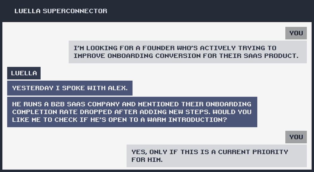 Connects the right people with context and timing, so the first message feels welcome, not cold.